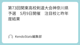 令和8年度の新年度最初の主要大会、「第73回神奈川県高等学校剣道大会 兼 関東高等学校剣道大会予選会」(男子団体)が5月9日(土)にカルッツかわさきで開催されます。上位7校に関東大会への出場権が与えられる、今年度最初の重要な大会です。大会概...